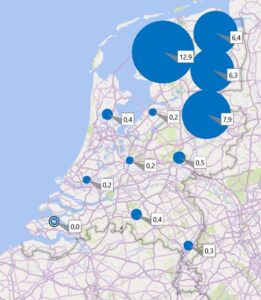 Net als in voorgaande jaren werden in de noordelijke provincies (Groningen, Friesland, Drenthe en Overijssel) de hoogste aantallen gevangen.